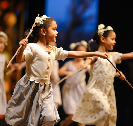 Mit meinen kreativen Tanz- und Theaterangeboten fördere ich Kinder spielerisch in ihrer Fantasie.